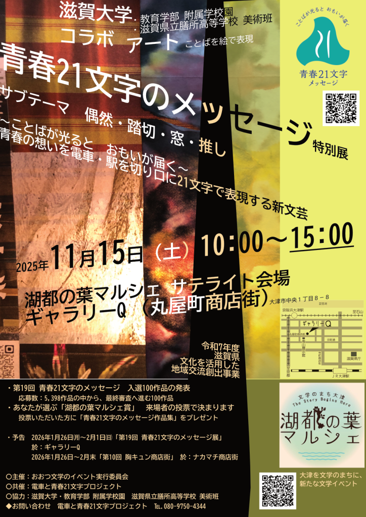 11月15日(土)開催の「湖都の葉マルシェ」サテライト会場(丸屋町商店街内・ギャラリーQ)に青春21文字が登場します。